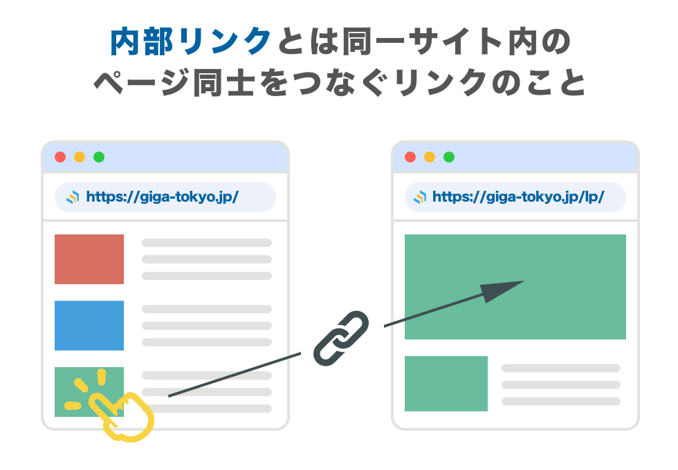 内部リンクとは、Webサイト内のページ同士をつなぐリンクのことです。内部リンクを強化することでWebサイトを自動的に検出してスキャンするクローラーがサイト内を漏れなく巡回できるようになり、検索結果に表示されないという機会損失を防ぎます。また、内部リンクが整理されるとユーザーの知りたい情報を探しやすくなる、滞在時間が伸びるなどの効果があり、サイト全体の評価を高めることができます。
